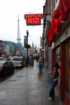 We drove into Nashville in the pouring rain, thanks to Tropical Storm Lee, and headed to the District (Downtown Nashville). If you can't find a parking spot on Broadway there are garages in the vicinity. Inside Jack's (since 1976), you queue up and move along in a cafeteria-like serving line. Your choice of meat is first; pork, beef brisket, ribs etc. Then come your sides; green beans, baked beans, slaw, Mac & Cheese, baked apples etc. and finally your drink cups and the register. The drinks and Q sauce are to your left past the register. If the main seating area is full they also have seating upstairs. Jack's uses Tennessee pork shoulders that are dry rubbed and then hickory smoked. I got the pork plate with baked beans and sweet apples. The baked beans and the sweet and smoky Q sauce were both excellent. The chopped pork and the apples were also very good. Enjoy!