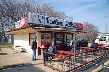 On U.S. 1 & Virginia Route 460 in Petersburg you will find Little Pig BBQ. Established in 1932, this family owned and operated Q stand was the first drive-in in the Petersburg area. Little Pig uses only Boston Butts. The pork is cooked for eight hours in an electric cooker. The tea is brewed fresh daily. The sweet homemade slaw consists of white cabbage with carrots and pickles. The sauce for the slaw has a mustard & vinegar base. The coleslaw is excellent! The barbecue sauce is homemade daily and it has a mustard base. The Q here is all chopped. My chopped q sandwich topped with slaw and sauce was excellent. Little Pig is only open on Thursday, Friday & Saturday.