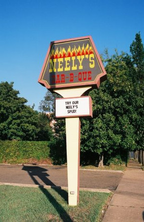 You enter into a dimly lit main dinning room. The Blues are playing in the background. I took a booth at the back wall. I ordered a pulled pork BBQ platter, with slaw and BBQ baked beans. The pitcher of sweet tea was already on its way. This Neely`s has been in Memphis since 1988. Patrick Neely oversees this location. Jim Neely is Patrick’s uncle. Jim Neely is a BBQ icon in Memphis. Before my Q arrived, I had already emptied half of the pitcher of tea. The sweet tea here is truly incredible. I could replace my dessert with this tea. I can honestly say that this is the best sweet tea with lemon that I have ever had. Then my Q platter arrived. It came on an old school cafeteria plate with the three molded sections. My Q was incredible. Neely`s slow cooks their meat over hickory wood. My Q was tender, perfectly cooked, and full of flavor. And when you add their sweet rich sauce to the Q, it becomes legendary. My slaw was superb, nice and sweet. And the BBQ baked beans were heavenly.