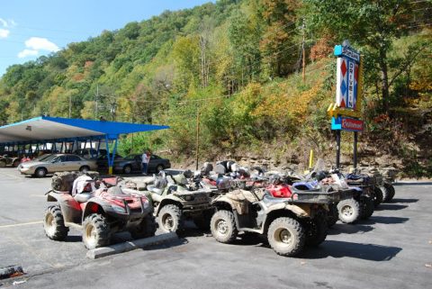 Do you love mud? If you do, the Sterling drive-in in Welch is a great place to be the first weekend in October. You can grab some excellent food and watch the mud covered ATV’s take over the town while they make their way between the Hatfield-McCoy trailheads. At lunchtime, droves of riders converged at Sterling’s. Mud-covered quad ATV’s were lined up on Route 16 ten or more back waiting to turn left into the drive-in. There they would join rows of ATV’s already parked. A totally mud covered ATV is really a beautiful sight and you know the riders had fun doing it. OK, now to the food. The dogs were grilled and they were topped with chili, onions, sweet slaw and mustard. The buns were split top and they were toasted on both sides. My slaw-dogs were excellent! The Sterling drive-in has been in Welch West Virginia since 1945. For curb service just flash your lights. They are closed on Monday. Otherwise, they are open daily Sun-Thursday 9am – 11pm & Fri-Sat 9am-midnight. And they do take VISA. Note: This year 2007, the National Trailfest on the Hatfield-McCoy Trails took place between October 4th-8th. The dates may change for 2008. See www.nationaltrailfest.com for current 2020 info.